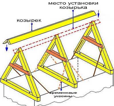 После установки ферм желательно их дополнительно скрепить между собой при помощи легких досок во избежание их непроизвольного наклона и смещения от дождя и ветра.