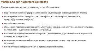 - материалов для гидроизоляции;