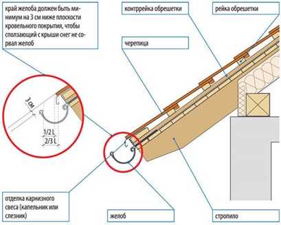 - на крайнюю доску обрешетки нижнего ската устанавливается карнизная планка – тогда влага не проникнет под крышу. Также можно использовать для этих целей уголок 15х15.