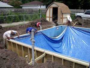 Обратите внимание! Разборные модели бассейнов изначально уже комплектуются чашами-лайнерами. Если оборудуется стационарный бассейн, то пленку необходимо раскроить, а потом сварить на месте монтажа.