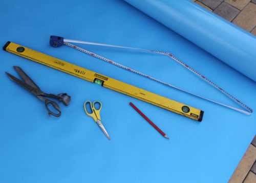 - Режущий инструмент (ножницы или острый нож) для раскроя материала покрытия.