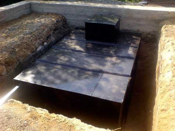 Предназначенный для эксплуатации металлический короб полностью обрабатывается антикоррозийным покрытием и покрывается гидроизоляционным материалом. Можно использовать битум или мастику. Нужно позволить слою изоляции застыть и окрепнуть. На это потребуется некоторое время.