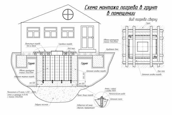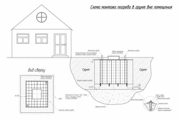 видео-инструкция по монтажу своими руками, особенности строительства под домом, при высоком уровне грунтовых вод, на участке, как сделать вентиляцию, цена, фото