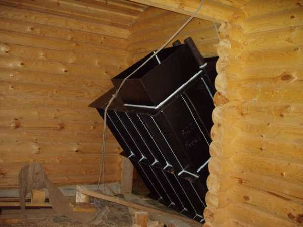 - В потолочном перекрытии обустраиваем люк 1*1 метр в виде металлической рамы с наборным дощатым щитом на петлях.
