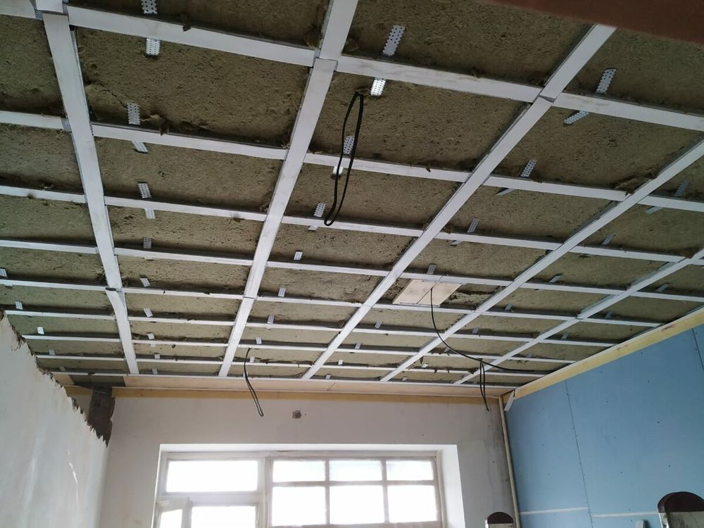 Звукоизоляционный материал в виде плит проще монтировать, когда весь каркас подвесного потолка собран, поэтому дальше мы будем описывать именно этот способ звукоизоляции.