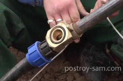 - Присоединить водопроводную трубу, ведущую к дому.