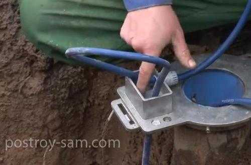 Затем необходимо вывести наружу и зафиксировать страховочный трос, чтобы снять с адаптера часть нагрузки, которую оказывает вес насоса. Остается подвести электропитание к кабелю насоса и проверить работу установленного оборудования.