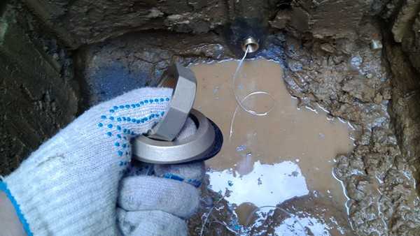 Используя Т-образный ключ, опускаем ту часть, которая не снимается в скважину, на нее устанавливаем уплотнитель из резины, а сверху кольцо. С помощью гайки нужно зафиксировать эти элементы для достаточного уровня герметичности. Чтобы получилось правильно и надежно, используем гаечный ключ.
