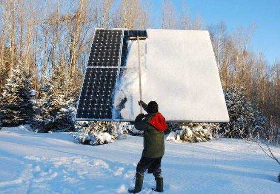 Имейте в виду: слой снега, находящийся на поверхности солнечной батареи, может привести к прекращению выработки энергии, поэтому необходимо следить состоянием лицевой части солнечных панелей и как можно чаще производить очистку.