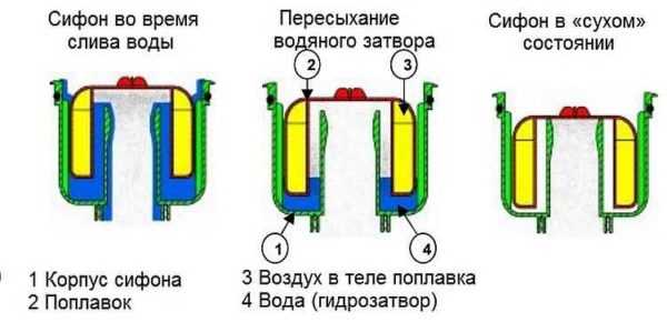 - сифон – состоит из гидрозатвора и поплавковой конструкции;