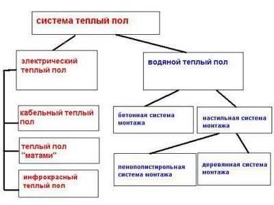 Ми не випадково винесли в назву даної статті 2 види теплих підлог: електричну і водяну. Тому як саме вони і складають всю широту вибору видів теплої підлоги. У свою чергу, електричні і водяні теплі підлоги підрозділяються на такі типи.