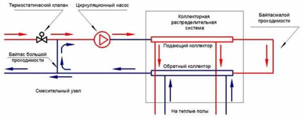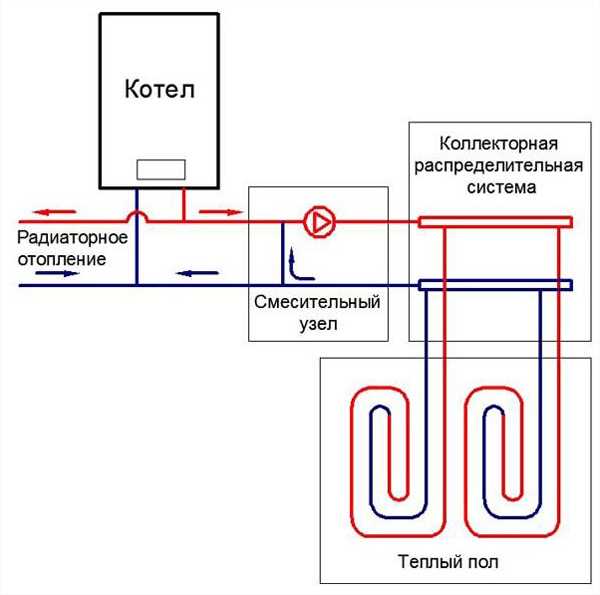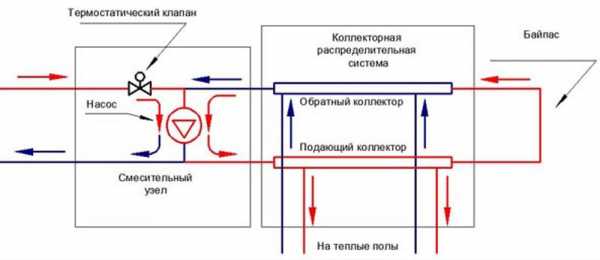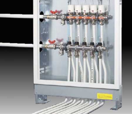 У колектором шафі з’єднуються подає і поворотна труби від котла з трубами системи водяної теплої підлоги