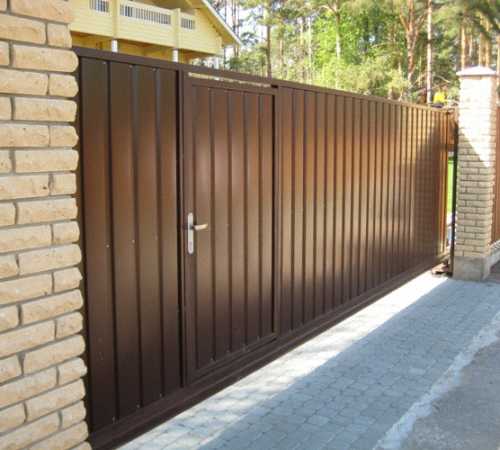 Если требуется сооружение ворот откатного типа, совмещенных с калиткой, то всю конструкцию следует сделать нераздельной. Она способна прослужить намного больший срок и доставит меньше хлопот при сооружении и эксплуатации. Самое пристальное внимание необходимо уделить закреплению рамы калитки, оптимальным решением видится использование «невидимых створок» изнутри конструкции.