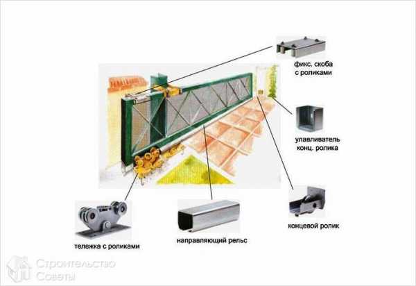 Конструкцию ворот откатного типа следует разделить на такие элементы: