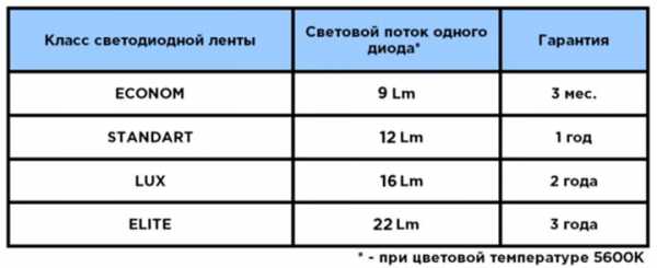 Вот общая таблица сравнения характеристик всех вышеперечисленных светодиодных лент.