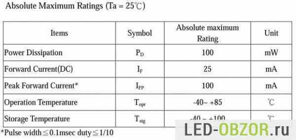 Параметры приведены для светодиода цветовой температурой 6000К-7000К