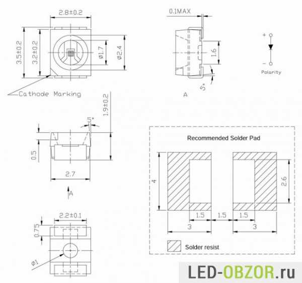 Ну а числа обозначают длину и ширину самого светодиода. 5мм — ширина и 5мм — длина.