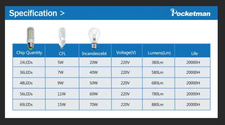 Таблица сравнения ламп накаливания с LED-лампами