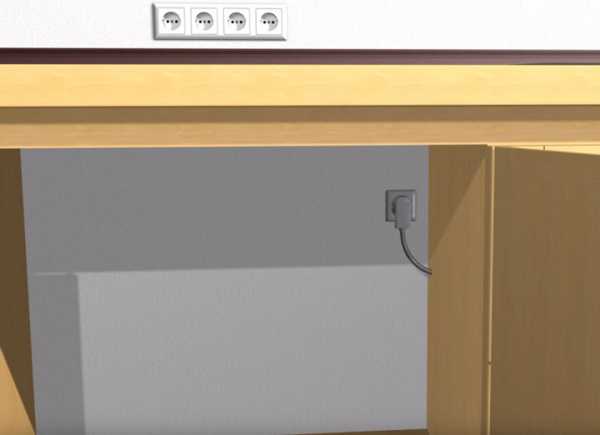 Если вы хотите рядом установить еще и духовой шкаф, то розетка должна находится ниже уровня духовки. Обычно это расстояние на уровне ножек кухни.