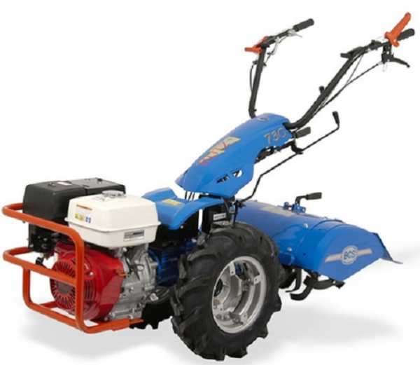 Не менее интересно считается итальянская модель «BCS 730» c «хондовским» двигателем в 9 л.с. По основным характеристикам она мало отличается от «Caiman», но компоновка и расположение основных узлов машины выполнены в высшей степени грамотно. Только эта модель обладает уникально низким центром тяжести, делающим тяжелый мотоблок даже при высоких скоростях обработки очень устойчивым и стабильным. Вес «BCS 730» составляет около 120 кг, отбор мощности выполняется с помощью специальной коробки и шлицевого вала, что положительно влияет на надежность техники.