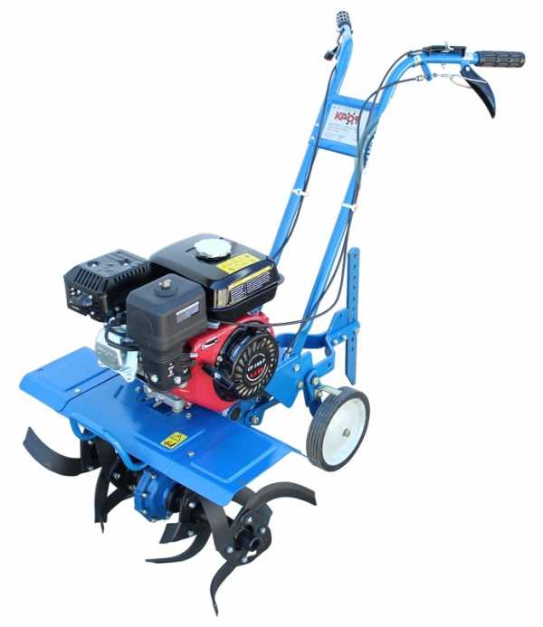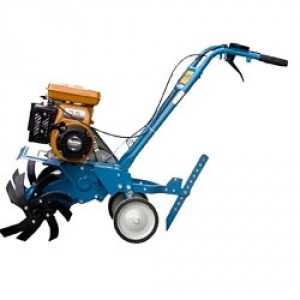 На сельхозмашину установлен бензиновый мотор 2,6 л.с. Благодаря небольшому весу 48 кг и скромным габаритам, превосходно работает на ограниченном пространстве. Несмотря на отсутствие задней скорости, агрегат отличается неплохой маневренностью. Основное предназначение – культивация грунта с шириной захвата 35/60 см на глубину 25 см. Возможна агрегация с дополнительными навесными сельхозорудиями.