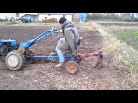 Мотоблок Нева вспашка земли плугом, подготовка к вспашке