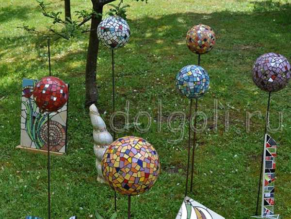 Не только плоские поверхности поддаются обработке плиткой, в нашем случае керамической. Бетонные или гипсовые фигурки для сада тоже подойдут для этой цели. Так что не спешите выбрасывать старые, которые потеряли свой вид или надоели — попробуйте их сначала декорировать мозаикой керамическими обломками.