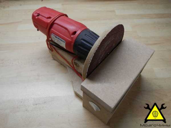 - шлифовальное устройство. Самый простой вариант делается из устойчивого стола, вертикального шлифовального вала и электродвигателя. Используется абразивная лента, которой обрабатываются торцы заготовок из дерева.