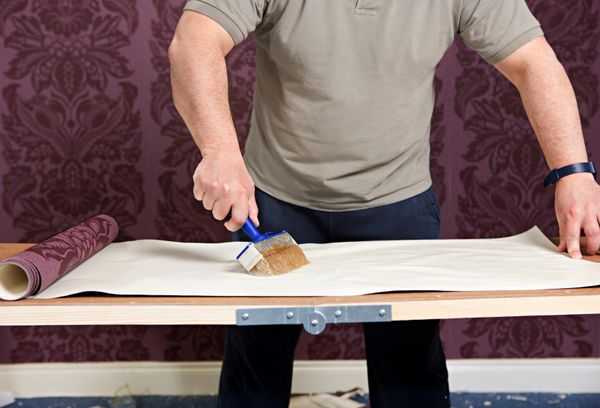 - Клей готовится согласно инструкции и наносится равномерным слоем на обратную сторону шпалер.