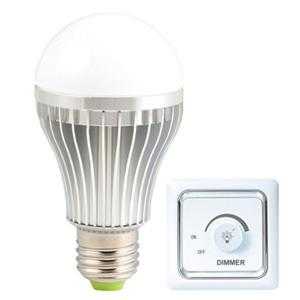 В таких моделях яркость света регулируется либо при помощи обыкновенного димера или выключателя, который необходимо пощелкать в течении одной секунды, что послужит сигналом для встроенного блока управления в цоколь лампы, и уровень яркости будет ступенчато уменьшаться или увеличиваться от 5% уровня до 33%, затем- 66% и наконец- до 100%.