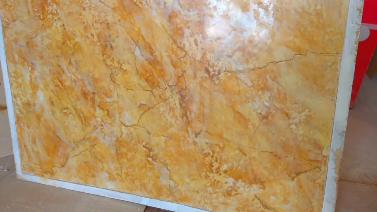 Фактура приобретает неоднородный оттенок за счет частичной прозрачности покрытия и переменной плотности слоев. Имитацию натурального мрамора создают именно плавные переходы глянца в матовость в углубленных рельефных участках отделочного покрытия.
