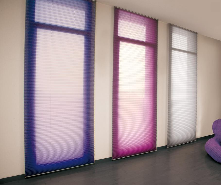 Еще одно современное веяние — жалюзи-плиссе. Такие шторы изготавливаются из цельного полотна плиссированной ткани, собирающейся складками. Чтобы закрыть или открыть окно, следует использовать шнур. В состав конструкции также входит груз, который утяжеляет ее нижнюю часть. Преимущества плиссе: стильный и «уютный» вид, хорошая светозащита.