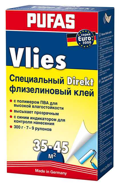 Под брендом PUFAS распространяется наибольшее количество разновидностей флизелинового клея. Один вид располагает синим индикатором, который помогает нанести клей максимально равномерно. Другой является усиленным, такой продукт подходит даже для нанесения обоев из стекловолокна. Третий вид предназначен для заправки обойно-смазочных машин. И это ещё не всё!