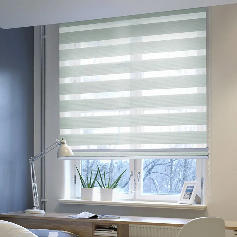 У них есть два слоя ткани, которые вы можете выровнять, чтобы пропускать свет, или расположить их в шахматном порядке, чтобы блокировать весь свет. Эти слои ткани доступны в нескольких нейтральных цветах, что позволяет подобрать их к цветовой гамме вашего дома.