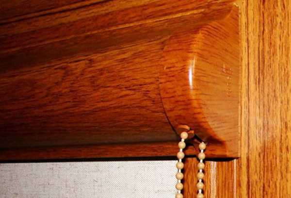 В приклеенные держатели вставляется «кассета» или открытый барабан со шторой (не забудьте перед этим надеть на шестерню сматывающего устройства цепочку) и проверяется работоспособность механизма. Вдоль штапиков наклеиваются направляющие. В них вставляется утяжеляющая планка внизу полотна шторы. Монтаж завершен!