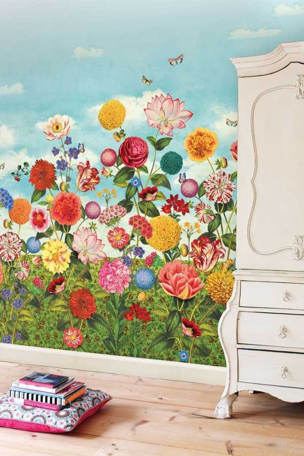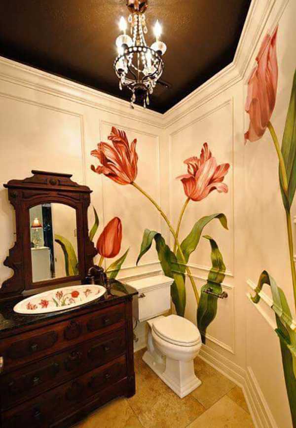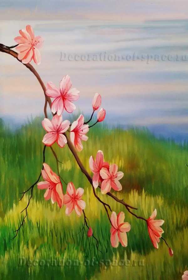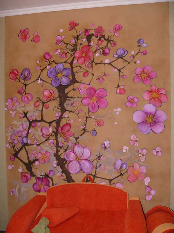 И лучше всего для этих целей подойдет именно роспись на стене в виде цветка — крупного или множества цветков поменьше.