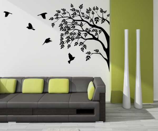 - Стилизованные яркие деревья могут придать уникальность любой гостиной.