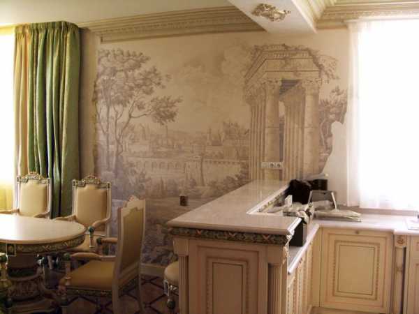 - для классического или викторианского стиля гармонично впишутся в интерьер старинные колонны с видом на море, изображения цветущего сада;