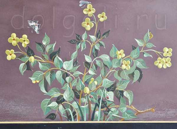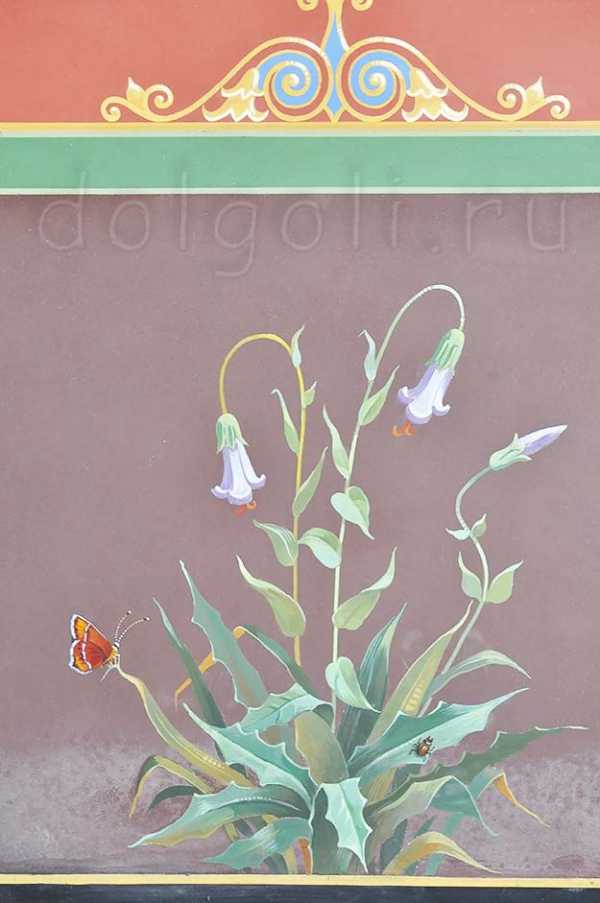 До нас дошли некоторые фрески, например, итальянские, что в городе Помпеи. Но об этом чуть позднее. Остановлюсь на некоторых примерах подражания этой технике — росписи стен, цветы и сидящие на них бабочки выглядят как живые.