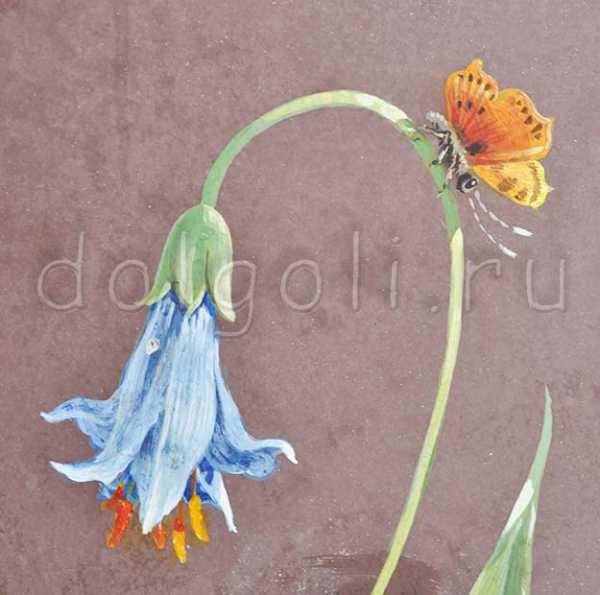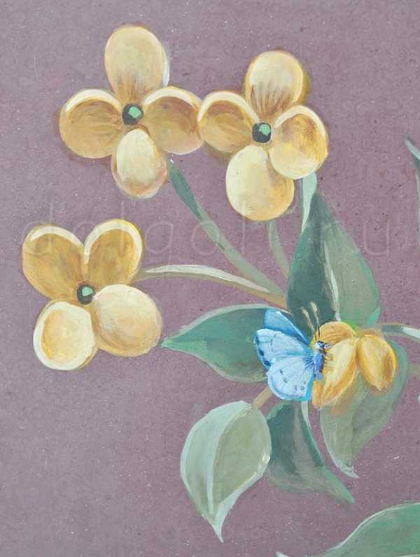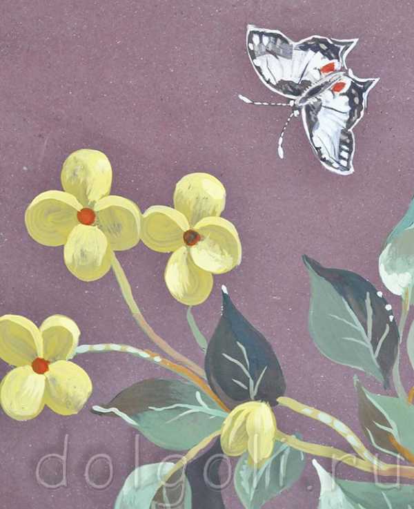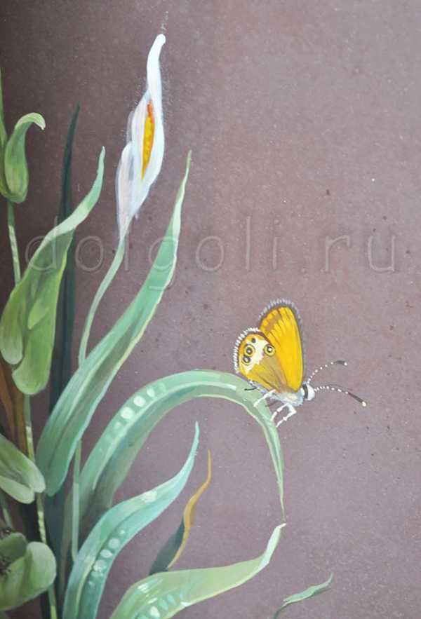 Вот как выглядит эта роспись вблизи. Далее будет несколько фрагментов. Первый с бабочкой. Цветы, листья — как видно, ничего сложного.
