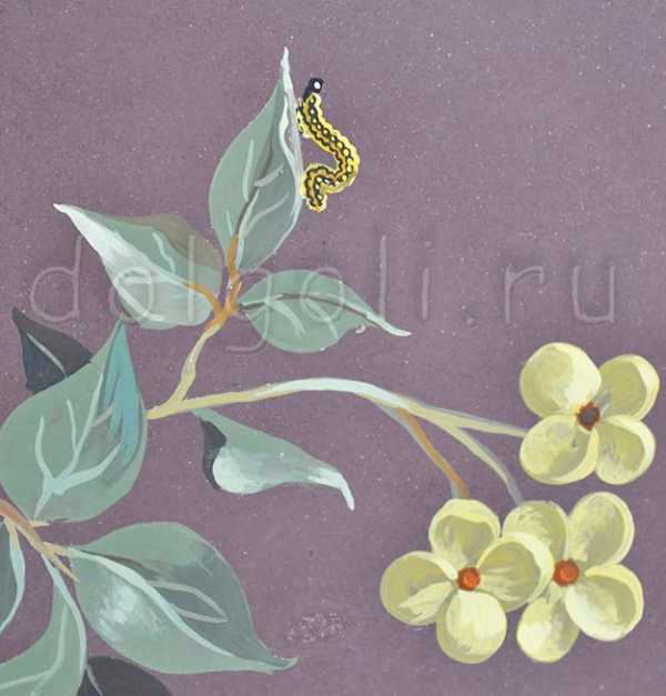 Особый шарм растениям с цветами придают нарисованные то тут, то там насекомые — бабочки, стрекозы, жуки, гусеницы, муравьишки. Цветы хочется рассматривать и рассматривать, так они притягивают взгляд.