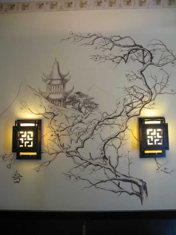 На стене роспись цветы – художественная в интерьере, живопись в восточном стиле, идеи ручной графики, рисунки в квартире, абстракция в спальне, 3d цветы и дома, граффити