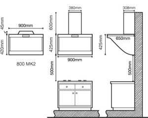- Навешивать наклонную кухонную вытяжку следует так, чтобы середина портала приходилась на 65 см от электрической плиты и на 75 – от газовой. Это высоко, так обеспечивается надлежащая безопасность нижней грани портала.
