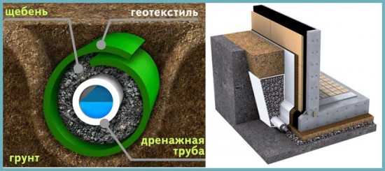 Кольцевой дренаж применяется при строительстве погреба своими руками при высоком уровне грунтовых вод.