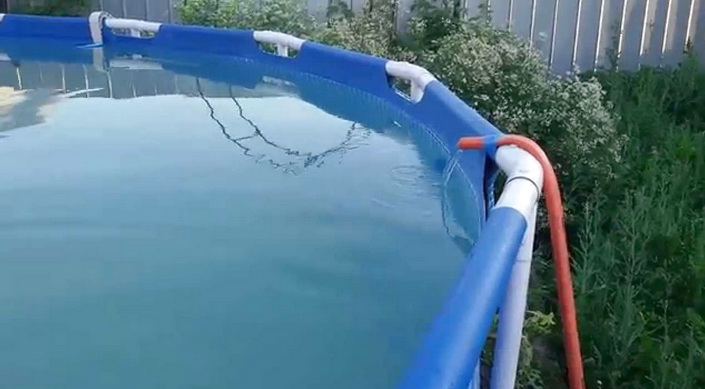 Этот метод нагревания долгий, затратный, опасный и не подойдет, если объем воды большой. Еще один минус — риск испортить ПВХ, если конструкция каркасная или надувная. Тем не менее, этот способ часто встречается среди советов дачников. Обязательно соблюдайте меры безопасности во время работы.