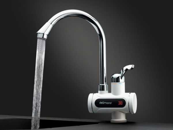 1. Delimano уже через 3 секунды подает горячую воду. Мощность – 3 кВт, имеет привлекательный внешний вид, легко устанавливается и значительно сокращает расходы на электроэнергию. Корпус состоит из металлических и пластиковых деталей. Кран поворачивается в разные стороны, поэтому его можно использовать для раковины с несколькими отделениями. Предлагаются модели нагревателей Делимано с ручным и автоматическим управлением, причем последние имеют цифровой монитор для более удобного контроля за температурой воды.