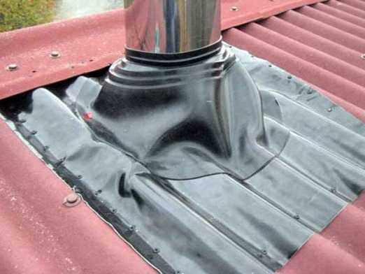 ΠΡΠ»ΠΈ ΠΊΠΎΠ½ΡΡΡΡΠΊΡΠΈΡ Π΄ΡΠΌΠΎΠΎΡΠ²ΠΎΠ΄Π° ΠΏΡΠ΅Π΄ΠΏΠΎΠ»Π°Π³Π°Π΅Ρ Π²ΡΠ²ΠΎΠ΄ ΡΡΡΠ±Ρ ΡΠ΅ΡΠ΅Π· ΠΊΡΠΎΠ²Π»Ρ Π΄ΠΎΠΌΠ°, Π½Π΅ΠΎΠ±Ρ ΠΎΠ΄ΠΈΠΌΠΎ ΠΎΠ±ΡΠ°ΡΠΈΡΡ Π²Π½ΠΈΠΌΠ°Π½ΠΈΠ΅ Π½Π° ΡΠ·Π΅Π» ΠΏΡΠΎΡ ΠΎΠ΄Π°. ΠΠ°ΠΊ ΠΏΡΠ°Π²ΠΈΠ»ΠΎ, ΠΏΠ»ΠΎΡΠ°Π΄Ρ ΠΎΡΠ²Π΅ΡΡΡΠΈΡ Π² ΠΊΡΡΡΠ΅ Π½Π° 10% Π±ΠΎΠ»ΡΡΠ΅ ΡΠ΅ΠΌ ΠΏΠ»ΠΎΡΠ°Π΄Ρ ΡΠ΅ΡΠ΅Π½ΠΈΡ ΡΡΡΠ±Ρ. ΠΡΡΠ΅ΡΡΠ²Π΅Π½Π½ΠΎ, ΡΡΠΎ ΠΌΠ΅ΡΡΠΎ Π½Π΅ΠΎΠ±Ρ ΠΎΠ΄ΠΈΠΌΠΎ Π·Π°ΡΠΈΡΠΈΡΡ ΠΎΡ ΠΏΡΠΎΠ½ΠΈΠΊΠ½ΠΎΠ²Π΅Π½ΠΈΡ Π²ΠΎΠ·Π΄ΡΡ Π°, Π²Π»Π°Π³ΠΈ, ΠΎΡΠ°Π΄ΠΊΠΎΠ². Π’Π°ΠΊΠΈΠΌ ΠΎΠ±ΡΠ°Π·ΠΎΠΌ, ΡΡΠΎ ΠΌΠ΅ΡΡΠΎ ΡΡΠ΅Π±ΡΠ΅Ρ ΠΎΡΠΎΠ±ΠΎΠ³ΠΎ ΡΡΡΡΠΎΠΉΡΡΠ²Π°, ΠΈ Ρ ΠΎΠ΄Π½ΠΎΠΉ ΡΡΠΎΡΠΎΠ½Ρ Π΄ΠΎΠ»ΠΆΠ½ΠΎ Π³Π°ΡΠ°Π½ΡΠΈΡΠΎΠ²Π°ΡΡ Π³Π΅ΡΠΌΠ΅ΡΠΈΡΠ½ΠΎΡΡΡ ΡΠ·Π»Π°, Π±ΡΡΡ ΡΡΠΎΠΉΠΊΠΈΠΌ ΠΊ Π²Π½Π΅ΡΠ½ΠΈΠΌ Π²ΠΎΠ·Π΄Π΅ΠΉΡΡΠ²ΠΈΡΠΌ ΠΎΠΊΡΡΠΆΠ°ΡΡΠ΅ΠΉ ΡΡΠ΅Π΄Ρ, Π° Ρ Π΄ΡΡΠ³ΠΎΠΉ β ΠΌΠ°ΡΠ΅ΡΠΈΠ°Π», ΠΎΠ±Π΅ΡΠΏΠ΅ΡΠΈΠ²Π°ΡΡΠΈΠΉ Π²ΠΎΠ΄ΠΎ- ΠΈ Π²ΠΎΠ·Π΄ΡΡ ΠΎΠ½Π΅ΠΏΡΠΎΠ½ΠΈΡΠ°Π΅ΠΌΠΎΡΡΡ Π΄ΠΎΠ»ΠΆΠ΅Π½ ΠΏΡΠ΅Π΄ΠΎΡ ΡΠ°Π½ΡΡΡ ΡΠ°ΠΌΡ ΠΊΡΠΎΠ²Π»Ρ (ΠΌΠ΅ΡΡΠΎ ΠΊΠΎΠ½ΡΠ°ΠΊΡΠ° Ρ ΡΡΡΠ±ΠΎΠΉ) ΠΎΡ Π²ΠΎΠ·Π³ΠΎΡΠ°Π½ΠΈΡ, ΠΎΠ±ΡΠ³Π»ΠΈΠ²Π°Π½ΠΈΡ, Ρ.ΠΊ. ΡΠ΅ΠΌΠΏΠ΅ΡΠ°ΡΡΡΠ° Π²Π½ΡΡΡΠΈ Π΄ΡΠΌΠΎΠΏΡΠΎΠ²ΠΎΠ΄Π° ΠΌΠΎΠΆΠ΅Ρ Π΄ΠΎΡΡΠΈΠ³Π°ΡΡ ΡΠ²ΡΡΠ΅ 1000Β°Π‘ (Π² Π·Π°Π²ΠΈΡΠΈΠΌΠΎΡΡΠΈ ΠΎΡ ΠΊΠ°ΡΠ΅ΡΡΠ²Π° ΡΠΎΠΏΠ»ΠΈΠ²Π° ΠΈ ΡΠΈΠΏΠ° Π΄ΡΠΌΠΎΡ ΠΎΠ΄Π°).