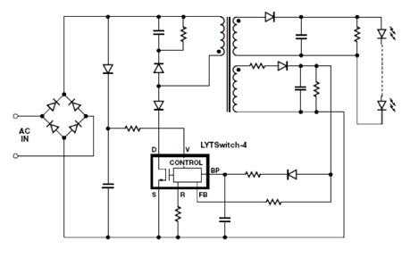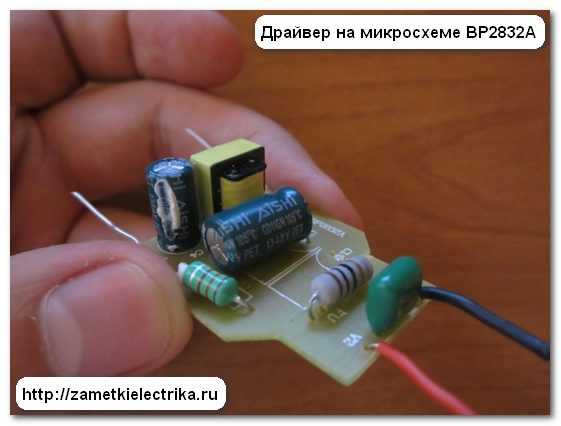 Вот типовая схема драйвера на микросхеме BP2832A, взятая из паспорта. Там же Вы можете ознакомиться с ее параметрами и техническими характеристиками.