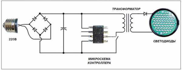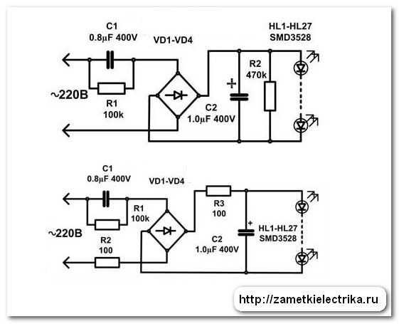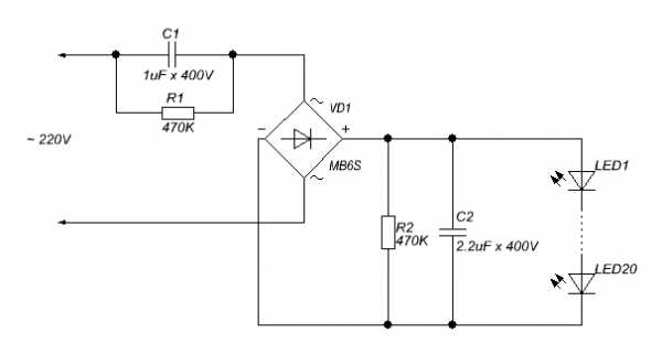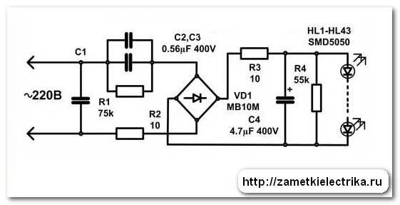 Схема светодиодной лампы на 220 в