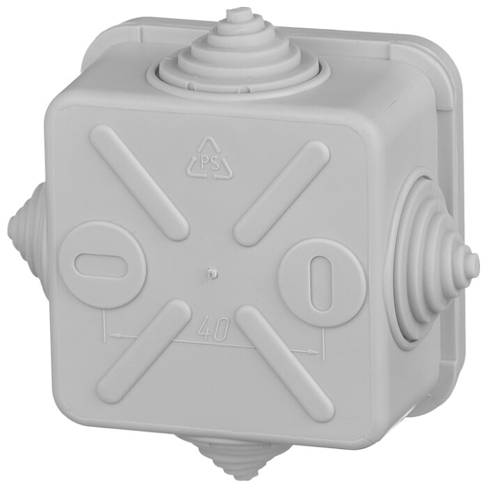Такие детали оснащены четырьмя вводами для кабеля с заглушками из резины, уплотняющие вхождение кабеля. Крышка крепится за счет плотного облегания наружного диаметра коробки.